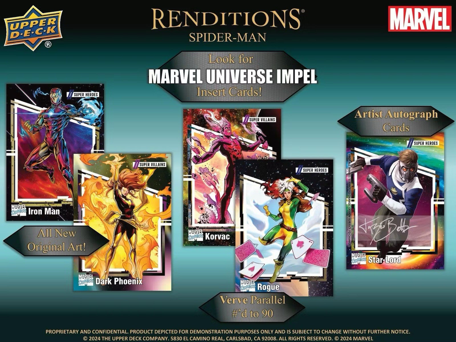 Marvel Renditions Spider-Man Hobby Box (Upper Deck 2024). Collect Spider-Man and his allies and adversaries across unique inserts! Look for all new original art Marvel Universe Impel insert cards! - [1] Marvel Universe Impel Card.
