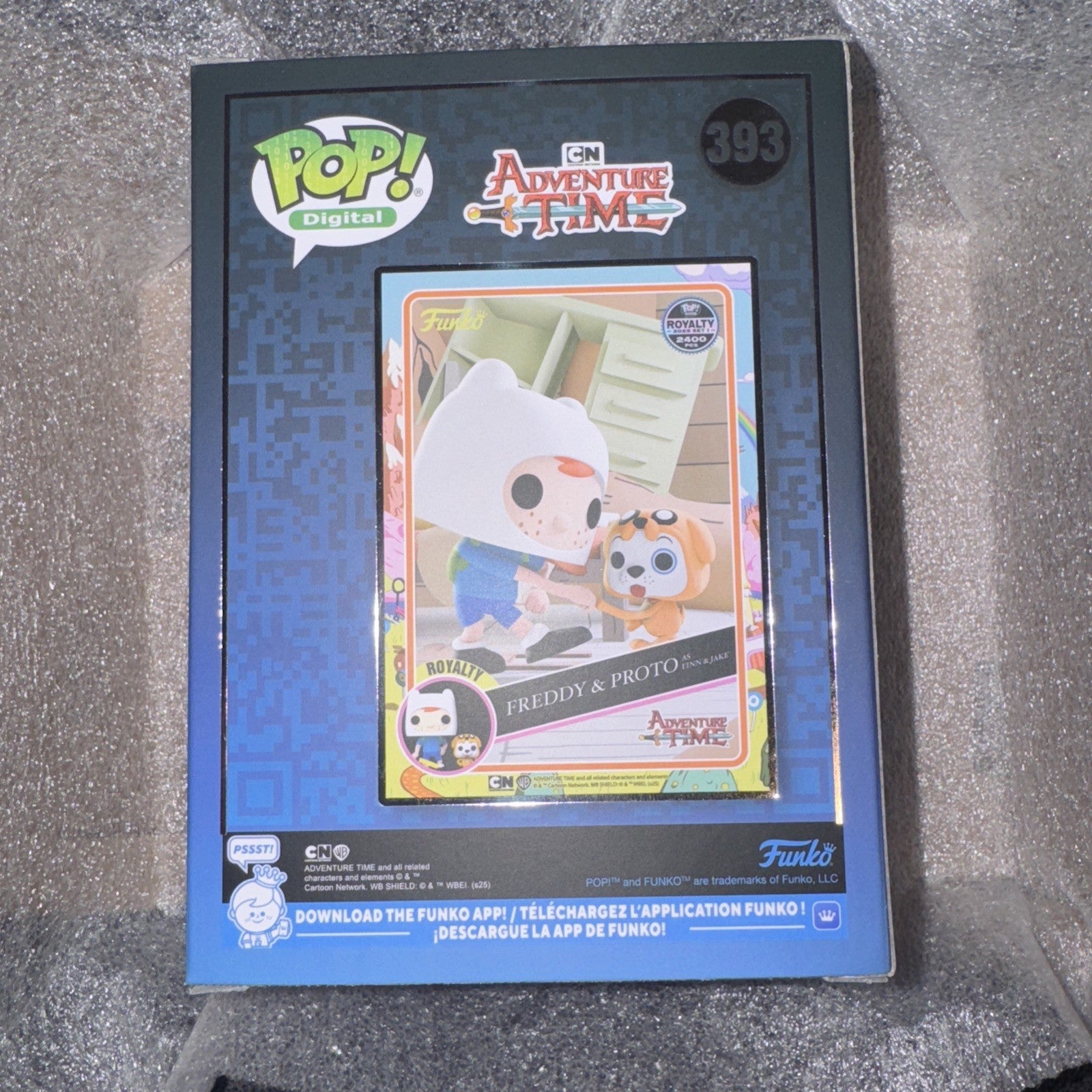 The Funko Pop! Digital Adventure Time Freddy & Proto As Finn & Funko Digital Exclusive is a limited edition vinyl figure featuring the characters Freddy Funko, Finn, and Jake the Dog from the popular animated show Adventure Time. This exclusive collectible item was released as part of the Digital Nft Physical Pop 2025: Adventure Time Series 2 collection by Funko, with a total production run of only 1271 pieces. The figure comes in its original packaging, making it a highly sought after item for fans of the show and collectors of Funko Pop! products.